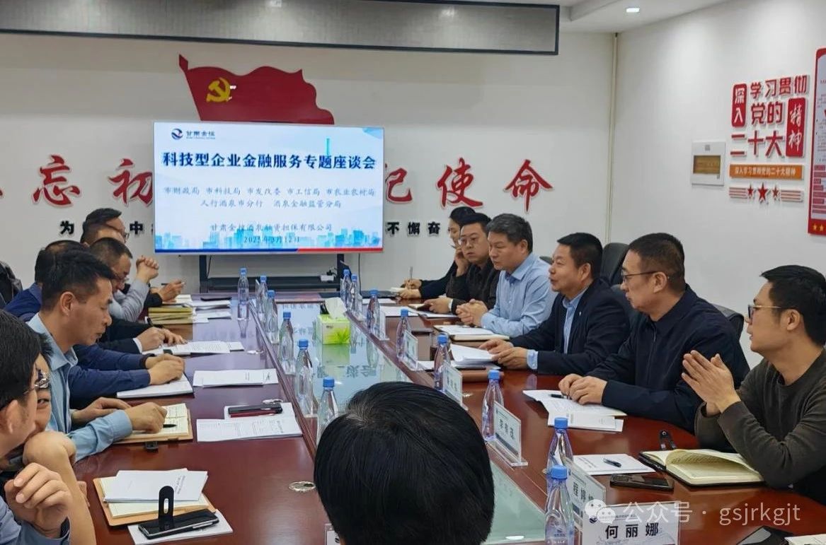 會上,金控酒泉擔(dān)保主要負(fù)責(zé)人詳細(xì)介紹了公司在支小支農(nóng)、科技型企業(yè)擔(dān)保融資支持方面的成果,并重點介紹了公司推出的“科技創(chuàng)新?lián)碑a(chǎn)品以及金控集團產(chǎn)業(yè)基金等股權(quán)投資工具;工商銀行酒泉分行負(fù)責(zé)人介紹了與金控酒泉擔(dān)保合作的科技創(chuàng)新型企業(yè)擔(dān)保貸款產(chǎn)品。各與會單位結(jié)合職能,聚焦本地重點科技型企業(yè)融資需求難點開展了討論交流。